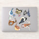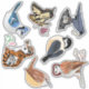 Una selección de pájaros gráficos y animales, reproducidos a partir de mis propios ilustraciones originales. Un cuervo sobre un cráneo con una llave, un tigre bebé y una mariposa, una marea azul, una hirera de carolina, un pollo con gorro negro, una lechuza de grano de corazón y una mariposa de cola de tortuga y flores rosas orientales.