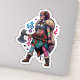 Esta feroz pegatina de arte digital presenta a una poderosa mujer guerrera bárbara, armada con un arma de color y cubierta de piel, cuero y armaduras inspirada en la estética de la alta fantasía y la Viking. Con el cabello flotante, los tatuajes tribales y una postura dominante, evoca el espíritu de los personajes clásicos de AD&D, las leyendas de la espada y la hechicería y los mundos épicos de fantasía. Perfecto para decorar laptops, cuadernos de bocetos, fundas de dados o equipo RPG, este diseño audaz y de alta resolución es imprescindible para los fans de Dungeons & Dragons, arte de fantasía y mujeres guerreras que conquistan tanto dragones como mazmorras.