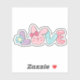 Agradable y divertido pegatina de vinilo de Pascua con la palabra Amor en colores de primavera y un conejito de Pascua.
