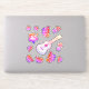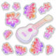 Ukulele arcoíris con plumaria, hibisco y frondas.