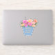 Una bonito, diversión, dulce flor en un pegatina de olla con un dicho positivo. ¡Que tengas un día hermoso!