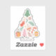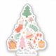 Ilustracion festivo de árboles de Navidad hecho de elementos de vacaciones como medias, campanas, latas de dulces, regalos, ornamentos, estrellas y vegetación, con la frase "cubierta las salas" debajo.