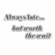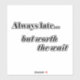 ¿Siempre llegas tarde? Hágale saber a todos por qué estás siendo esa persona en la carretera con este pegatina de calcomanía. Puede que llegues tarde todo el tiempo, pero apuesto a que mereces la pena esperar.