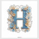 A large blue letter H features gold trim, raised edging, and intricate floral accents with daisies, vines, and pearls. Perfect for branding, invitations, greeting cards, and decorative typography projects.