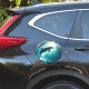 Un delfín bajo el agua con rayos de luz solar filtrándose a través del agua. Las palabras 'bucear profundo, vivir libre' están escritas encima de la imagen. Un maravilloso pegatina con un mensaje inspirador. Contiene contenido generativo.