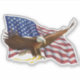 pegatina vinílico cortado por personalizados con una imagen de una bandera norteamericana ondeando y un águila calva en vuelo. Ver pegatina cuadrado coincidente, Ver confeti coincidente, bolso de favor, caja de favores, etiqueta de favor, bolsos de regalo, etiqueta y papel de envoltura. Ver toda la colección de Pegatinas Patriotic 40 en los INVITES | Sección Pegatinas y etiquetas.