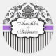 Pegatina del Boda de banda de Damask negro y púrpu