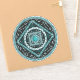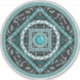 Esta mandala fue diseñada para el símbolo del zodiaco, Aquarius, que representa una piedra turquesa en el centro rodeada de elementos que representan el signo, como el símbolo del signo, la constelación y el símbolo alquímico del Aire, así como las viñas y tejas de fibra que la envuelven en una imagen sólida en tonos turquesa, plateado y negro.