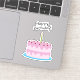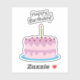 Un pegatina feliz cumpleaños con un ilustracion de torta rosada. Personalizar el pegatina de contorno con tu propio texto entre otras opciones.