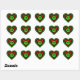 Diseño/injerto de Corazón Gótico con un cráneo brillante verde lindo pero espeluznante centrado en un corazón rojo rubí en el centro de un pegatina con forma de corazón negro. el diseño general es un rico contraste de color vibrante con los bordes exteriores oscuros