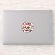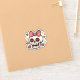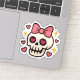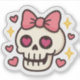 Pegatina de cráneo de Halloween con corazones rosados y arco.