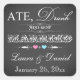 Este tipo de tipografía cuadrada de moda estilo chalkboard el favor de la boda gracias pegatina tiene una variedad de tipos de letra con rollos y corazones rosados y azules. Tiene una nueva visión divertida sobre la tendencia de Comer, Beber y estar casado, con un pequeño juego de palabras que dicen "Ate, Bebe, y se Casó" para reflejar el acontecimiento boda anterior. Coincide con la invitación a la boda que se muestra a continuación. Se personaliza fácilmente con su propia información. ****POR FAVOR, tenga en cuenta que todo se imprimirá tal y como aparece en su monitor. Zazzle no editará nada para tipos o desalineación, etc., y no lo veré una vez que lo haya pedido. Si necesitas ayuda con tu redacción, por favor envíame un correo electrónico ANTES de que pidas. Si hay algún otro elemento que necesita para hacer su evento extra especial, por favor envíe su solicitud a niteowlstudio@gmail.com.