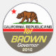 Jerry BROWN gobernador 2010 California Republicano por el demócrata Brown Edmund G. Brown Barbara Boxer Carly Fiorina Tom Campbell Meg Whitman eBay Fiscal General de Sacramento Republicano CA Presidente Barack Obama Boulder Pegatina
