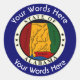 Este pegatina personalizado está decorado con el Gran Sello de Alabama que se puede personalizar con una selección de palabras arriba y abajo que permiten personalizarlo con el nombre de una persona, lugar, posición, etc.