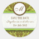 Pegatina de boda en monograma de damasco marrón y verde que puede utilizarse como sello de invitación.
