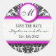 Pegatina de boda de monograma de damasco negro y rosa que puede utilizarse como sello de invitación.
