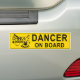 Mamá de danza (RU e Irlanda) Pegatina de advertencia amarilla. El diseño consiste en: Disfraz/vestido de baile, zapatos de grifo, nota musical y estrellas. Ideal para Mamáes de baile, llevando a sus jóvenes estrellas de baile a clases de baile, etc.