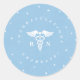 RN Caduceus pegatina en azul y blanco con el texto "¡Felicitaciones Graduado!". ¡Perfecto para fiestas de graduación de la escuela de enfermería para celebrar la nueva enfermera!