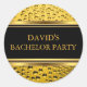 Pegatina del partido del bachiller. Diseño de cerveza de oro y negro. Zazzle exclusivo. Personalizar con sus propios detalles.