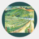 Pintura acuarela de colinas onduladas de viñas de uva en un viñedo de California.