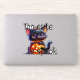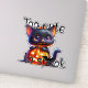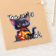 Este encantador pegatina de Halloween muestra un adorable gatito negro sosteniendo una calabaza tallada con el lúgubre texto "Demasiado lindo para hablar". Ideal para añadir un toque de cortesía a tus celebraciones de Halloween.