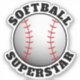 Un pegatina deportivo con una pelota de béisbol y la frase 'Superestrella del Softball' giran alrededor de la pelota. Gran idea de regalo para tu jugador deportivo.
