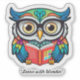 Este pegatina animado exhibe un búho sabio con gafas, sumergido en un libro, adornado con acentos dorados. Envuelto en un fondo de textura clara, captura la alegría de la lectura e inspira un amor por el aprendizaje. Perfecto para temas educativos. "Imagen original generada por Meta AI. La IA generó obras de arte. Con licencia CC BY-SA 4.0.