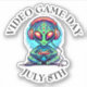 El 8 de julio es el Día de los Videojuegos. Divertido alien jugando videojuegos en forma de píxel artístico.