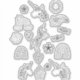 Unicornios y arcos detallan el arte de la línea blanca y negra. pegatinas amables para hacer todo más bonito.