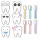 Pegatinas de dientes cortos para odontología pediátrica con dientes que usan accesorios diferentes y cepillos de dientes que se emparejan.