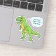 ¿Qué dice el T-Rex? Eso es lo que debes decidir. Este pegatina fresco y cortado tiene un dibujo de doodle de un dinosaurio Tyrannosaurus Rex verde con una burbuja de habla/pensamiento. Utilice la plantilla sencilla para agregar el texto. También puede editar más para cambiar el tamaño de letra o texto.
