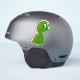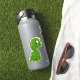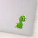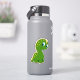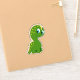 Dinosaurio verde lindo con manchas verdes claras y espinas amarillas, ojos azules y una sonrisa feliz.