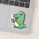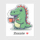 Un ilustracion de un lindo dinosaurio sosteniendo una taza de café.