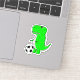 Dibujo en t-rex jugando al fútbol. Idea de decoración para portátiles infantiles.