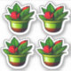Este encantador sticker presenta una planta de hoja verde con flores rojas brillantes en una maceta elegante verde y marrón. Ideal para agregar un toque de color a laptops, botellas de agua o cuadernos, es perfecto para amantes de las plantas y cualquiera que aprecie el arte botánico vibrante.