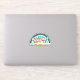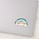 Diseño de texto de estilo retro colorido "Profesor - Enseñar, amar, inspirar" con un arcoiris colorido y decoración de corazones