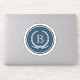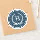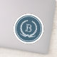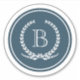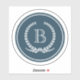 Diseño monograma con decoración de plumas laurel en forma redondeada a rayas sobre fondo azul