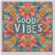 En el centro, una decoración animada con motivos florales intrincados rebosa de color, destacando la frase "Buenas vibraciones". El naranja, el rosa y el azul vivos crean un ambiente enérgico, ideal para realzar cualquier espacio con positividad.