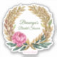 Un hermoso pegatina vinílico con un peón rosado sobre un elegante marco de laurel con acentos dorados. Perfecto para personalizar tu ducha nupcial o favores matrimoniales y decoración. Personalice el nombre y la fecha de boda o ducha de su Novia o de su Novia.