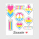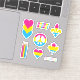 pegatinas de vinilo cortados por personalizados con una variedad de diseños en los colores de la bandera del orgullo pansexualidad; las formas incluidas: un signo de paz, corazones, estrellas, una hoja de arce, un fleur-de-lis, lápices y el orgullo del texto