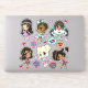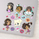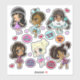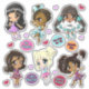 Un lindo grupo de chicas de todos los orígenes culturales: chicas afroamericanos, asiáticos, nativos americanos, hispanos, blancos e indios posando juntos con corazones y palabras motivadoras que los rodean.