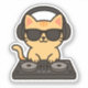 Cat DJ with headphones spinning tracks, perfect for party vibes.