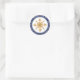 Presentando el logo de la Escuela de Posgrado Daniel Morgan en un pegatina.