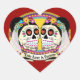 Dos felices novias de cráneo de azúcar con una pancarta debajo que dice "El verdadero amor es para siempre". ¡Los pegatinas se ven bien en los sobres de invitación!