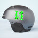 Doble el alien. El arte gráfico vectorial se coloca dos veces en el pegatina cuadrado para que tengas dos pequeños extraterrestres verdes separados. El diseño es un alienígena verde brillante con un bigote y ojos negros sosteniendo su mano en un signo de paz. Regalo para aficionados a la ciencia ficción y "geeks". Extraterrestre hipster.