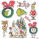 Esta impresionante hoja de pegatinas del Dr. Seuss tiene 8 calcomanías con Grinch, Cindy-Lou Who y Max.