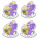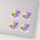 Conjunto de cuatro pegatinas de vinilo cortados con un ilustracion de un lindo dragón morado vigilando un tesoro; motivos de fantasía de personalizado animal para los niños; con plantilla de texto personalizado para el nombre de su hijo o mensaje personalizado