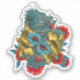 Un majestuoso dragón chino es representado entrelazado con dos vibrantes peces koi en medio de un lecho de flores florecientes. El dragón, con sus complicadas escalas y su poderosa postura, domina la composición. Sus ojos penetrantes y su boca abierta transmiten una sensación de fuerza y vigilancia. Los peces koi, uno dorado y el otro negro, nadan con gracia alrededor del dragón, simbolizando perseverancia y determinación. Los colores vivos de las flores le dan un toque de belleza y serenidad a la escena.