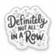 ¡Los pegatinas son perfectos para decorar tu laptop, funda de teléfono, botella de agua, periódico y mucho más! Un ilustracion de un pegatina lúdico con múltiples bocetos de patos en diferentes poses como estar de pie, remo y flotando. Los patos se ilustran en un estilo sencillo y caricaturista. El texto central dice "Definitivamente no todo en una fila", que está escrito en una tipografía caprichosa y curvada. El fondo del texto está adornado con formas de estrella, lo que añade un ambiente alegre y divertido al diseño.
