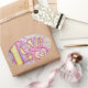 Pintura acuarela de la palabra amarilla dorada "Amor" con doble corazón. El rosa y el morado resaltan las letras y el corazón. Una ligera salpicadura de purpurina en la parte superior del cuadro le da un resplandor brillante. Personaliza este pegatina de arte de palabras de amor con tu propio texto e imágenes usando el botón "Personalizar".